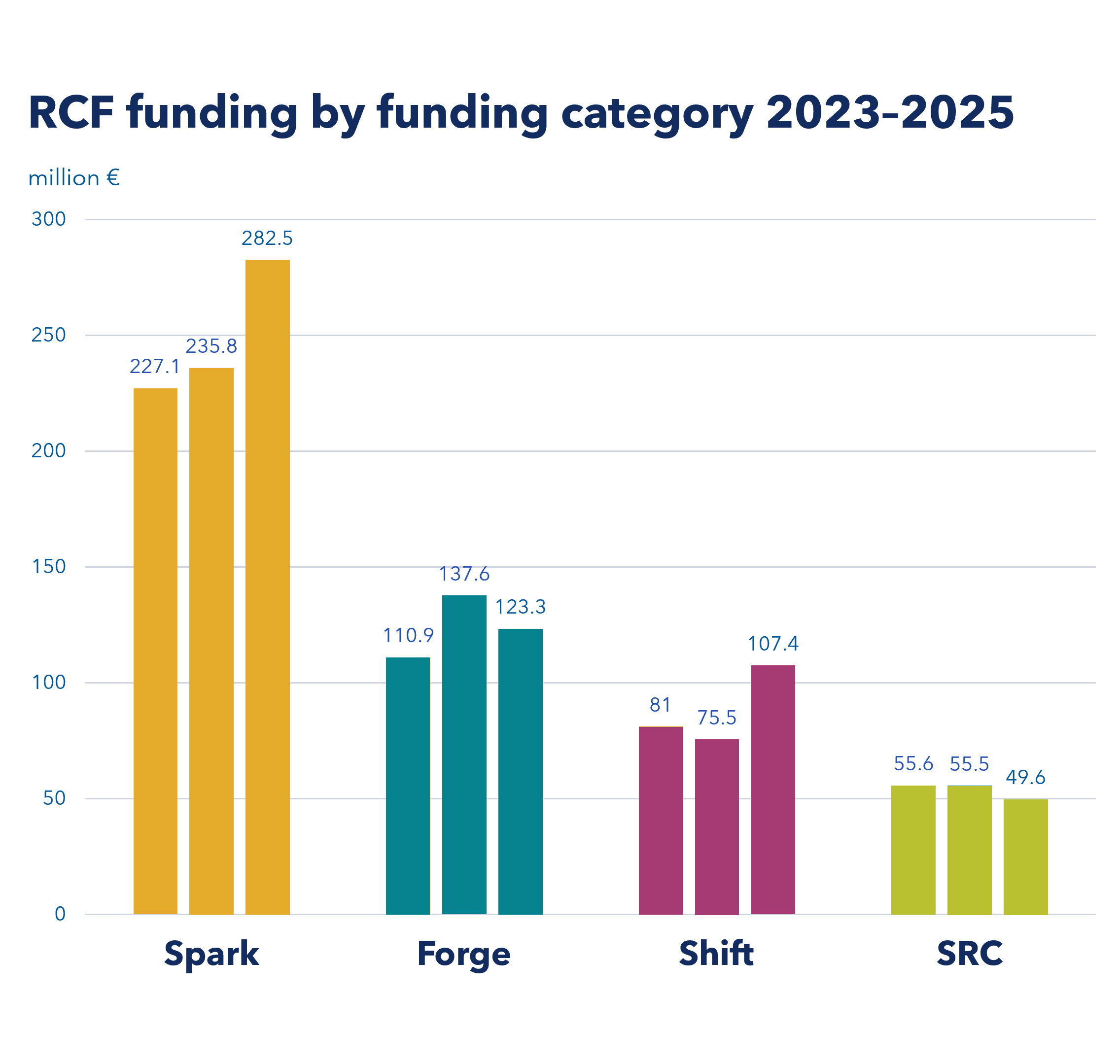*The total sum (€592m) includes the Strategic Research Council’s (SRC) proportion, approx. 50 million euros.